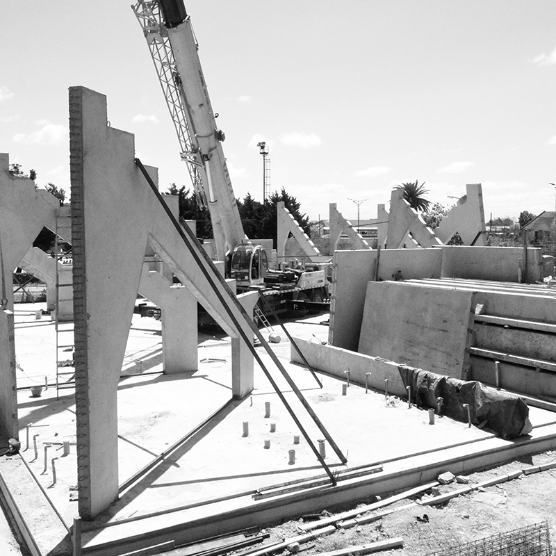 Introducimos tecnología en la construcción disminuyendo los tiempos de obra en un 40%. Gracias a un sistema apoyado en FABRICAS MOVILES que se pueden instalar en cada sitio de montaje y paneles y losas transportables, logramos llegar a lugares aislados y resolver condiciones geográficas o climáticas adversas. La organización y racionalización de los procesos de obra nos permite optimizar la calidad y disminuir los costos de la misma (10% menos de desperdicio de materiales).