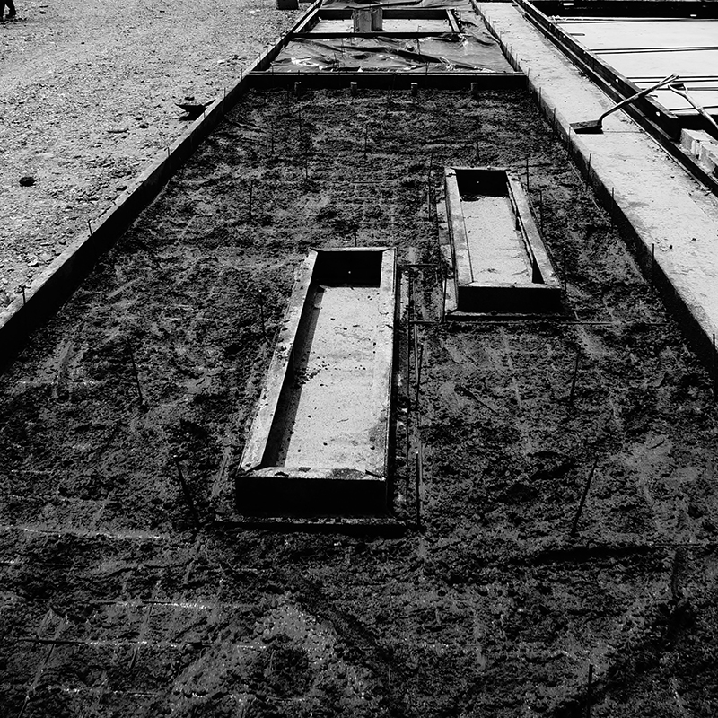 Los distintos elementos estructurales son elaborados en canchas de moldeo o baterías y distribuidos inicialmente sobre contrapisos resistentes construidos con este fin. Estas baterías horizontales conformadas por moldes metálicos servirán a su vez de mesa de moldeo, a medida que van trepando los encofrados laterales implantados a pie de obra.